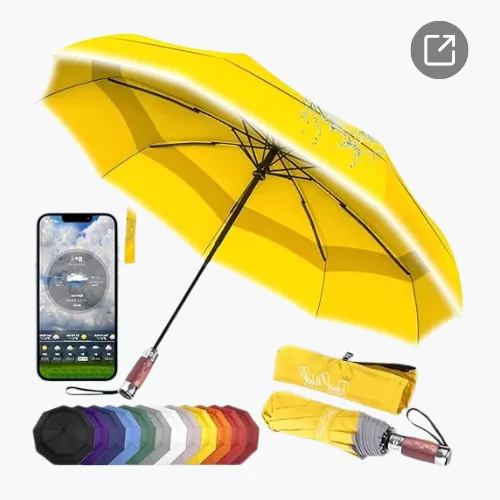 - Paraguas plegables: compactos y ligeros, son la mejor opción para el equipaje de mano.